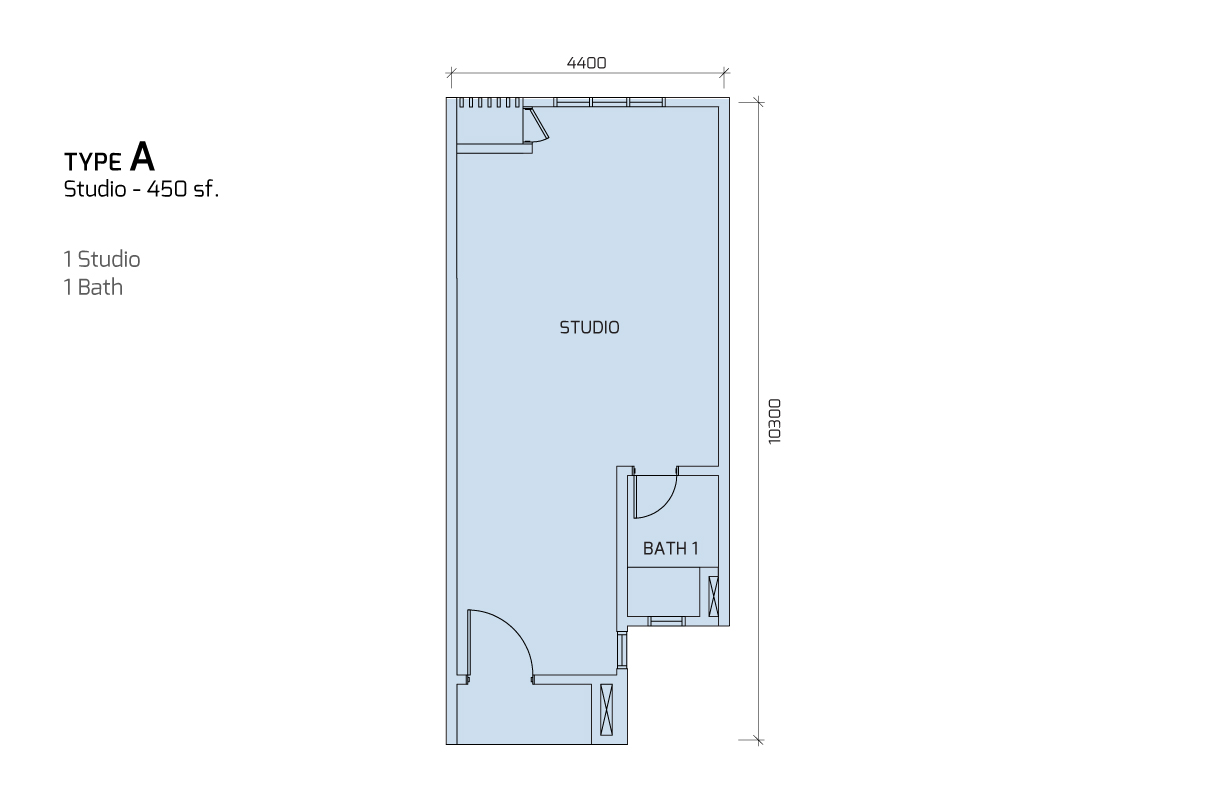 Type A: 1 Studio 1 Bath | 450 sq.ft