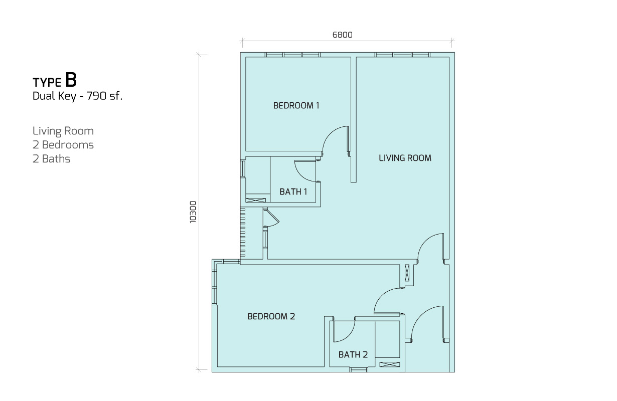 Type B: 2 Bedrooms 2 Baths | 790 sq.ft